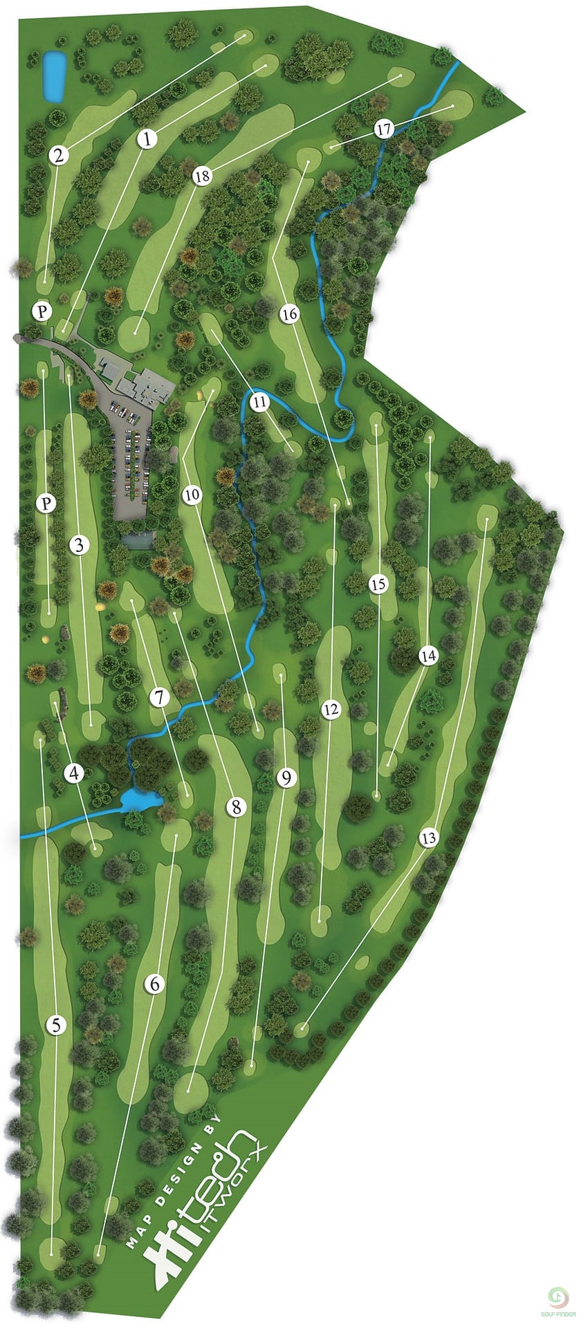 - Course Terrain: Moderate Bunkers (10-20), A Few Gentle Hills, Tree Lined, Grass Greens, Fairway Watering, Water Hazards, Easy Walking