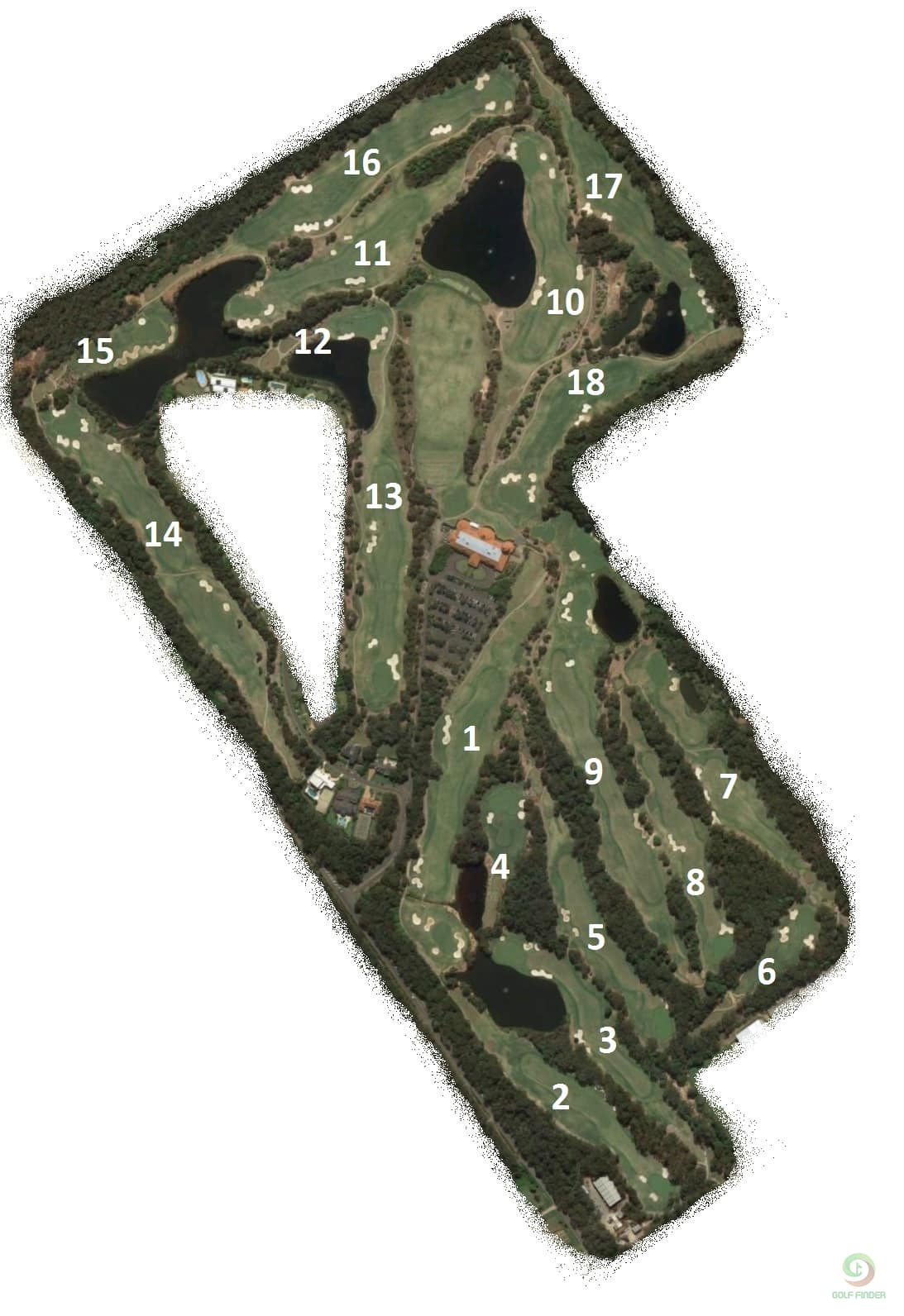 - Course Terrain: Heavily Bunkered (20+), A Few Gentle Hills, Tree Lined, Grass Greens, Fairway Watering, Water Hazards, Easy Walking