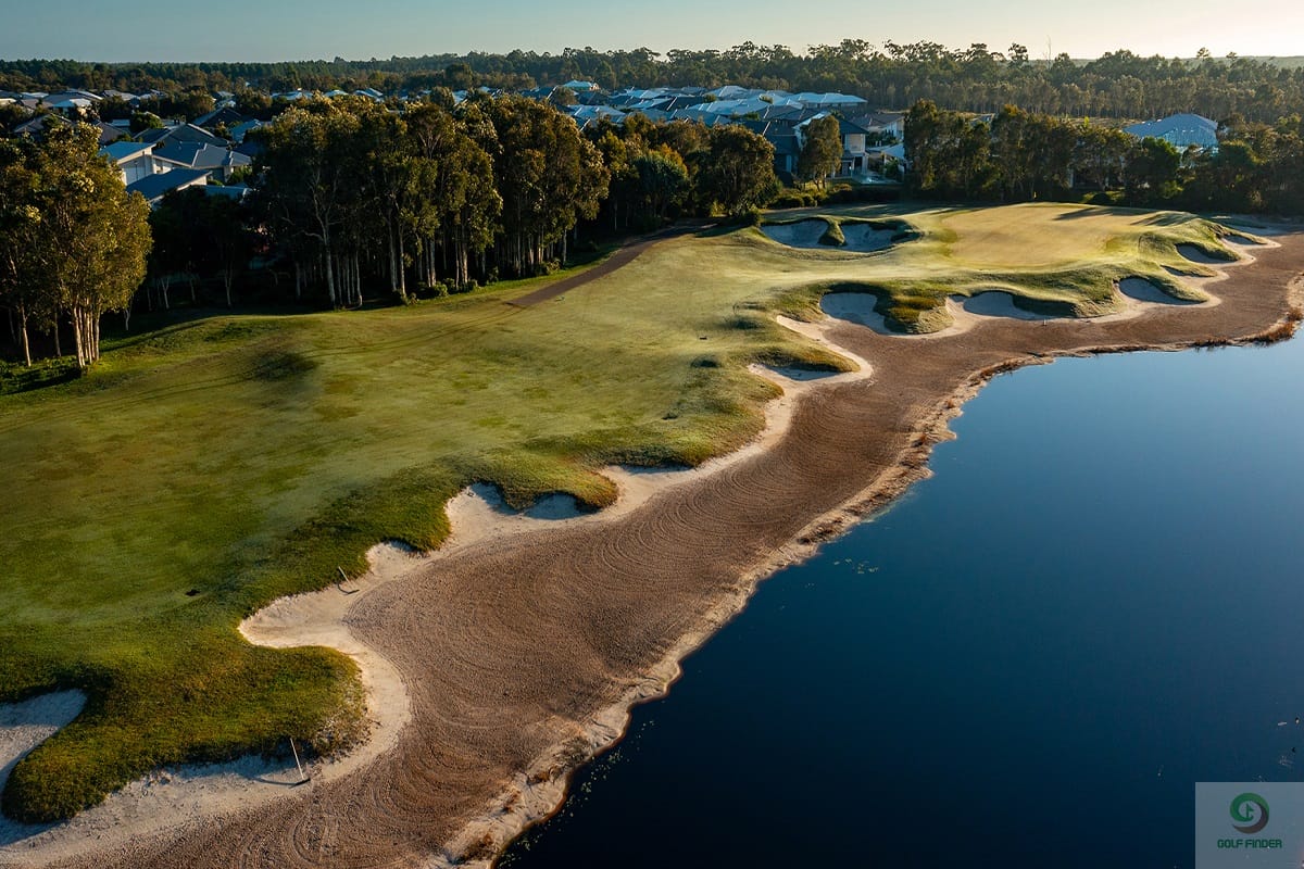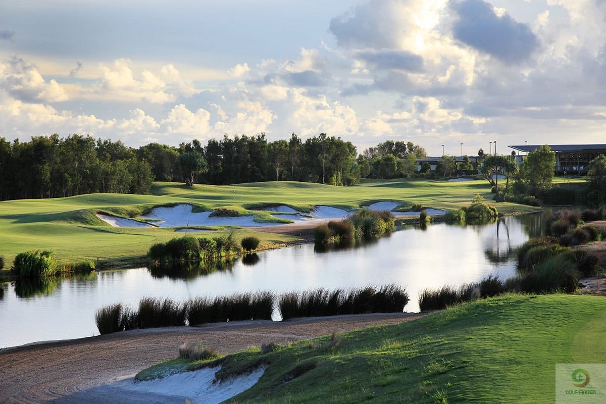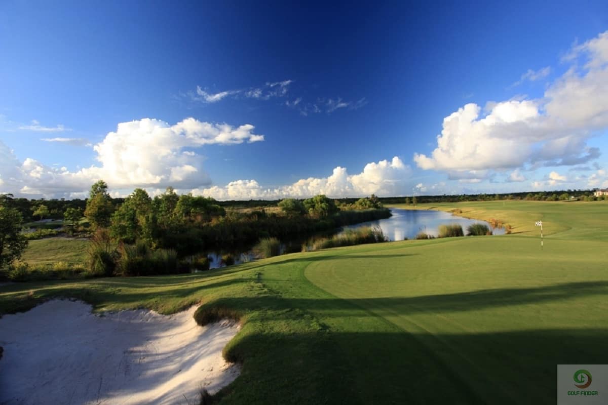 - Course Terrain: Flat, Water Hazards, Heavily Bunkered (20+), Modern-Links Style, Fairway Watering, Grass Greens, Easy Walking
