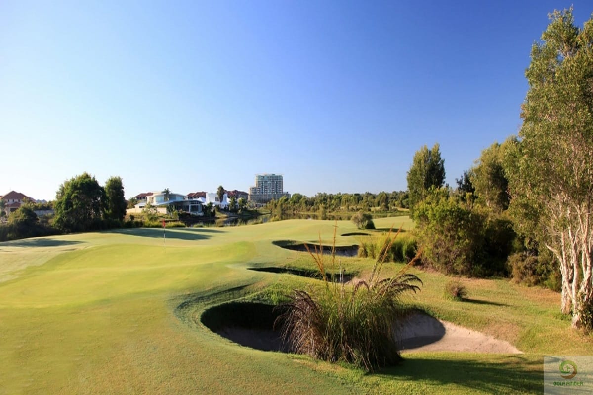 - Course Terrain: Mostly Flat, Undulating Ground, Water Hazards, Heavily Bunkered (20+), Modern Links Style, Fairway Watering, Grass Greens