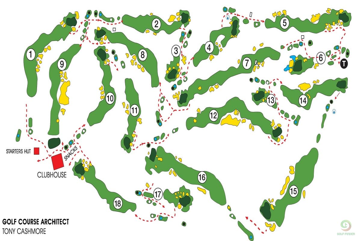 - Links Course: Black: 6459m, Blue: 6232m, White: 5677m, Red: 5164m