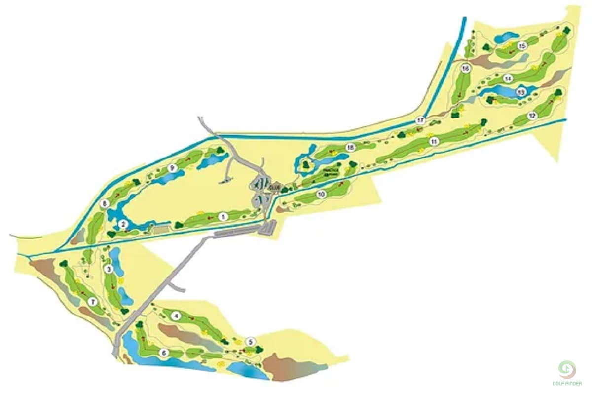 Terrain: Mostly Flat, Some Undulating Ground, Water Hazards, Heavily Bunkered (20+), Tree-Lined, Fairway Watering, Grass Greens